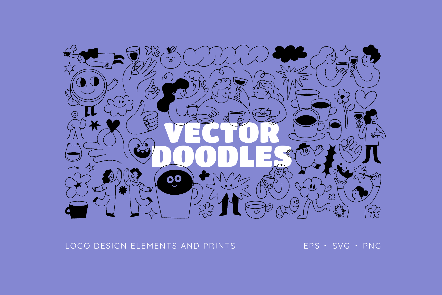 Collection of hand drawn vector illustrations and logo design elements available for purchase in my